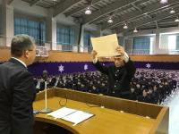 3月2日(木) 卒業式の前に3年生の同窓会入会式を行いました。