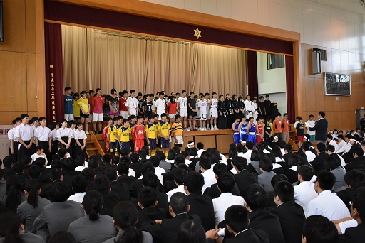 ◆応援団・チアリーダー同好会・吹奏楽部のもと、全校生徒で校歌・応援歌をおくりました。