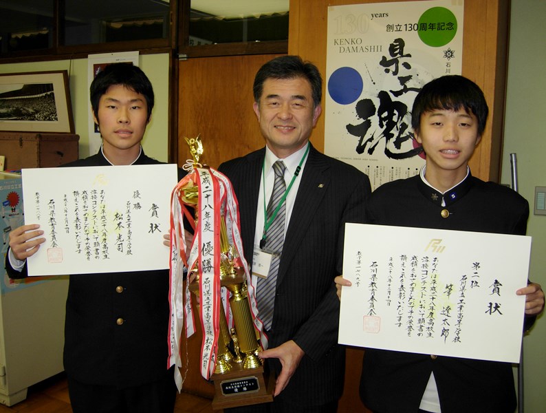 平成28年度高校生溶接コンテストが12月14日(水)石川県立小松産業技術専門校で開催されました。本校から出場した機械システム科A組松本光司君が優勝、機械システム科A組筆遼太郎君が準優勝を果たしました。