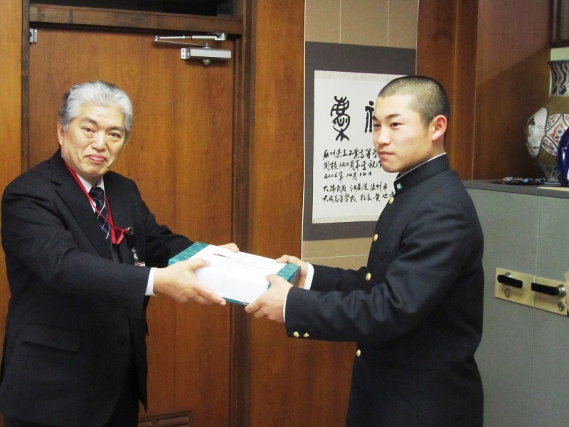 本校野球部の松田遼矢主将は、「この経験を今後に活かしていきたい」と感謝の意と抱負を述べました。
