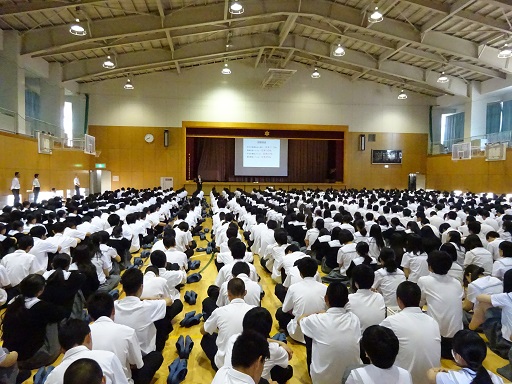 6月20日(火)8:30から30分間、全校集会を行い、校長講話を聴きました。