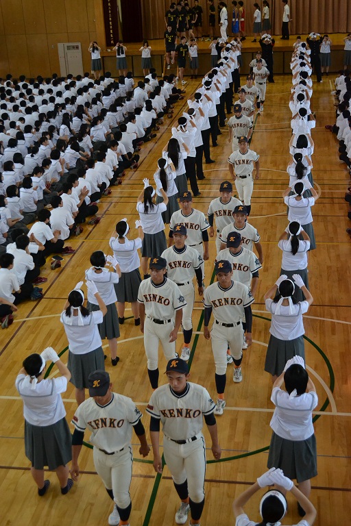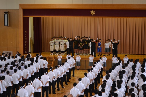本日、全国高校野球石川県大会、全国大会および北信越大会の壮行式を行いました。