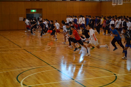 1・2年の運動部員が一堂に集まり、互いの交流を深めながらトレーニングを行います。考える選手としての意識の高揚をはかるとともに、トレーニングの重要性や総合的な体力・競技力の向上を目的としています。