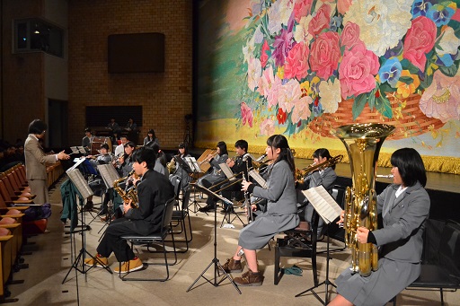 吹奏楽部の演奏に合わせ、3年生が入場しました。吹奏楽部の演奏曲「3月9日」には先輩への思いを感じました!