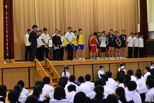 続いて、平成30年度石川県総合体育大会水泳競技および北信越高等学校総合体育大会の壮行式を行いました。
