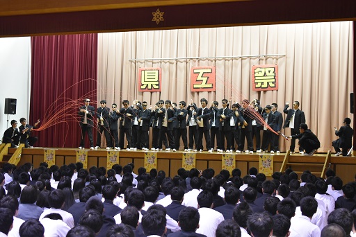 18日午前中にはオープニングセレモニーが行われ、吹奏楽部による演奏、チアリーダー同好会の発表に続き、1年生各クラスによるステージ発表がありました。