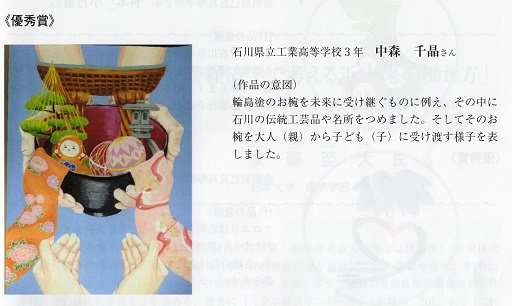 本校からは、3年デザイン科 中森千晶さん が、ポスターとシンボルマークの2部門で優秀賞に選ばれ、表彰を受けました。