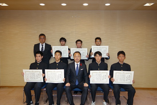 令和元年度(前期)金沢市高校生技能士表彰式に技能検定2級に合格した本校生徒7名が出席し、山野市長より表彰を受けました。