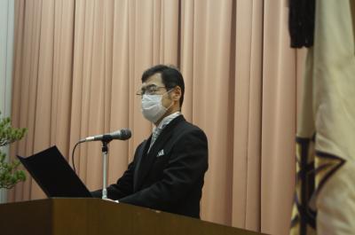 卒業式に先立ち、8時40分から同窓会入会式が行われました。寺谷同窓会会長より各科の代表者に同窓会優良卒業生表彰が渡され、河内副会長より同窓会歓迎のことばをいただきました。