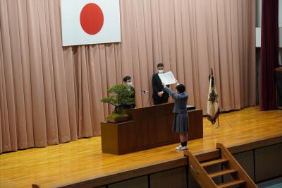 卒業式は、来賓として寺谷同窓会長、久世PTA会長をお招きし、新型コロナ感染予防対策を実施して行われました。
