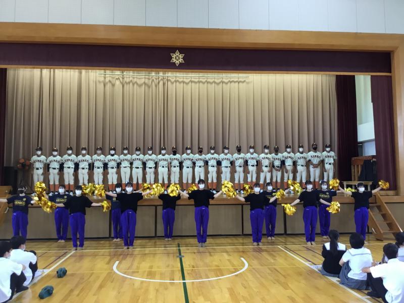 暑い中ではありましたが、7月8日(金)から始まる大会に向け選手達は頑張ろう、応援する生徒、職員は全力を尽くして頑張ってほしいという強い思いが溢れる壮行式となりました。