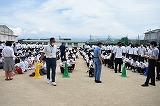 生徒たちは「お(押さない)・は(走らない)・し(しゃべらない)・も(戻らない)」の原則に従い、素早くグラウンドに集合しました。