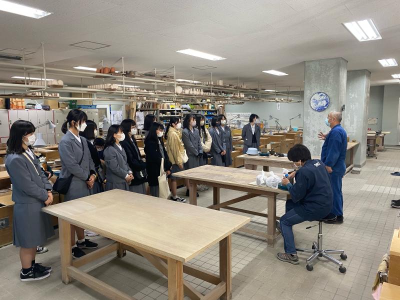 最終日ということで、生徒たちも疲れ果ててしまい、ちゃんとけんがくできるかなと心配でしたが、さすがは工芸科の生徒!!というところで、目の前に完成した伝統工芸の作品や制作をしている学生の様子をしっかりと見ていました。