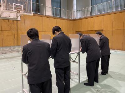 実際の投票用紙と投票箱が設置され、仮の3人の候補者に投票を行いました。