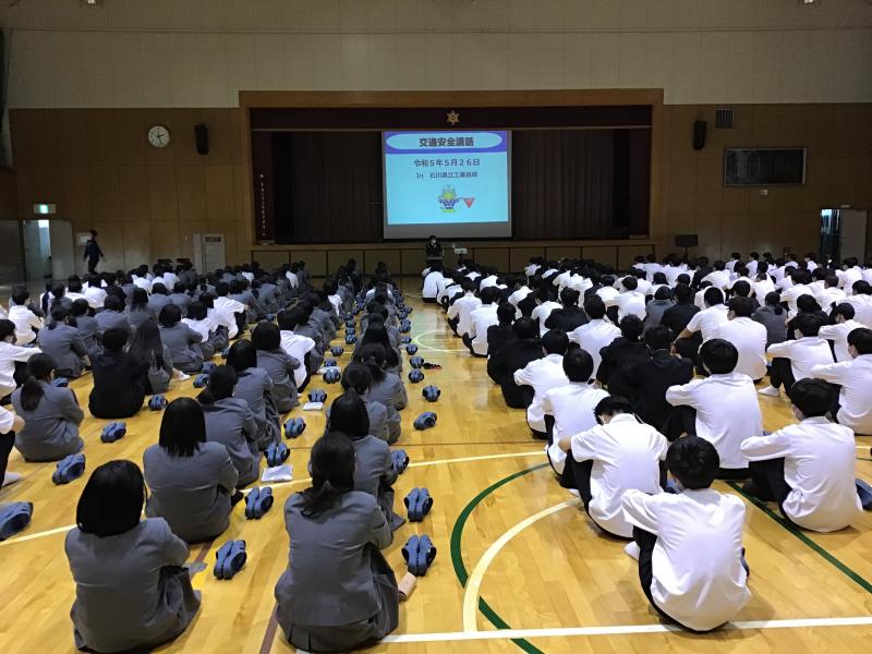 5月26日(金)6限に1年生を対象に、金沢中警察署の方をお招きし、「交通安全講話」を行いました。