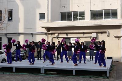 吹奏楽部とチアリーダー部が出演し、1年生だけでなく出演者のクラスメートも見に来ました。