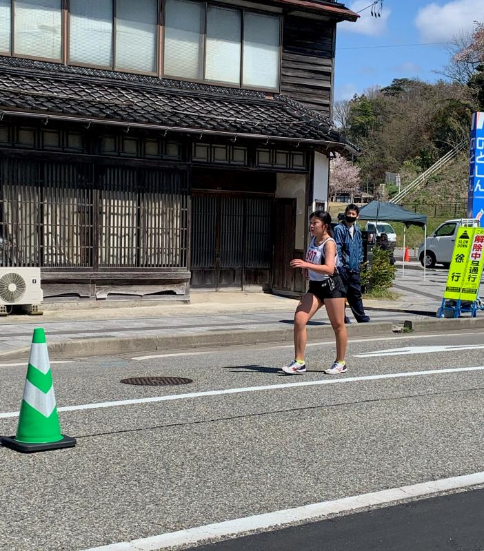第60回全日本競歩輪島大会が2日間の日程で輪島市で行われました。本校から参加した女子選手3名は持てる力を充分に発揮して好成績を収める事ができました。10日(土)に行われたジュニア1年2年3㎞では2Tの池田夢花が17分15秒自己最高記録で6位 新入生1Tの平下姫花は19分22秒で7位とダブル入賞を果たしました。また11日(日)に行われたジュニア女子5㎞でも3Tの太田喜梨が27分31秒と自己記録を大幅に更新,健闘したが19位に終わりました。今大会はオリンピック代表選考会を兼ねた大会でしたがコロナ対策を万全に行い地元の方、大会関係者のおかげで何とか無事に終える事が出来ました。本当にありがとうございました。無事に引率できて良かったです。