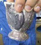 貝殻を洗って   →     焼く!    →  粉を溶かし、型にはめる →実際に書ける!→ 若干光ります!!