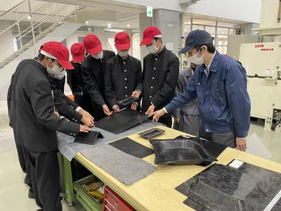 炭素繊維複合材料が実際にどのように作成されるのか説明を受け、興味を持って質問する生徒も多くいました。