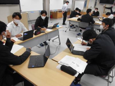 生徒はクロムブックを活用しながら、グループワークやペアワーク、先生役と生徒役の学び合いや成果の発表などの活動を通して、主体的・対話的に学びを深めていきました。