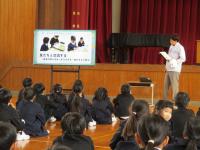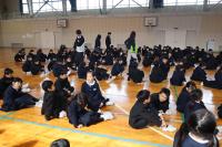 子ども達は金曜日に養護教諭と保健体育で「がんについて知ろう」の学習をしました。がんという病気や予防について学んだうえで、今回は和田さんの闘病経験や回復されてからの活動(患者や家族に寄り添い支える活動)等についてお聞きしました。