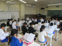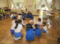 「さいころトーク」(出たさいころの目によって決められたことを話す…好きなもの・こと、今ほしい物、大人になったら何になりたいか等)をしました。なかなかユニークな答えもあって盛り上がっていました。