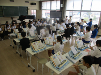 そのあと、5年生の伴奏で1年生が「さんぽ」を歌ったり 5年生の演奏に合わせて1年生が打楽器でリズム打ちをしたりして みんなで楽しみました。