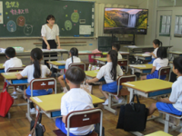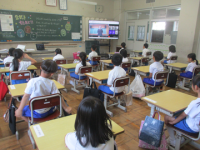 始業式は暑さ対策のためリモートで行いました。校長がくどうなおこさんの詩を紹介し、「〝1番いい日″を積み重ねて充実した2学期にしていきましょう」とお話しました。