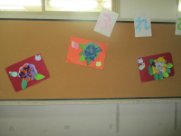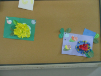 ふれあい学級の子どもたちが、お花紙や色画用紙を上手に組み合わせて「あじさい」の作品を仕上げて飾ってくれました。