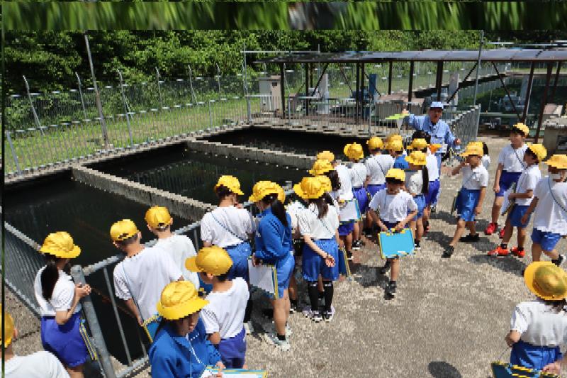 4年社会「水はどこから」の学習で、山中浄水場へ見学に行きました。水がきれいになる様子を見せていただき、できたてのおいしいお水もいただきました。