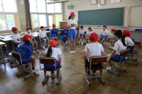 5月20日(火)に加賀市の全小学校の6年生が集まる連合運動会があり、100m走と学校対抗リレー(代表)に出場します。今日は、6年生の健闘を願って「壮行会」がありました。