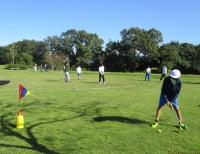 【パターゴルフ】 グループ内で 何打でボールをフラッグにくっつけられるか競いました。