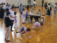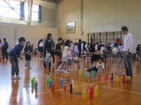 PTA 主催の「きんひが祭り」があり、たくさんの子ども達が参加しました。「きんひがピック」(昔遊び・軽スポーツ大会)では、豆つかみ・チョロQチキンレース・ペットボトルキャップ積み・雑巾がけレース・輪投げ・スリッパ飛ばし・コイン落としの7種目にチャレンジし、学年ごとに記録を競いました。制服のリサイクルバザーも好評でした。