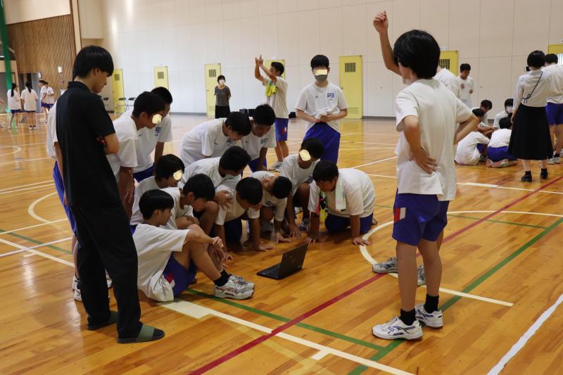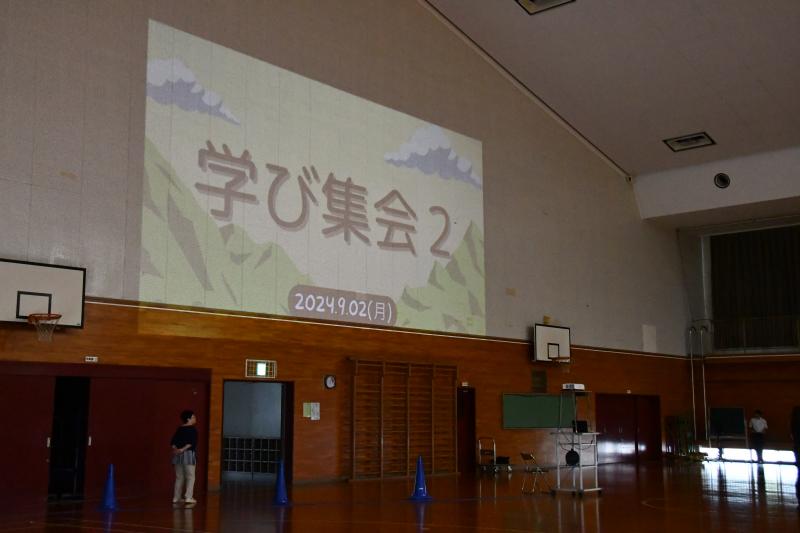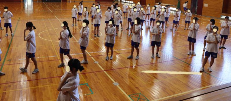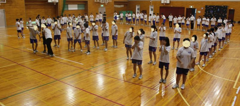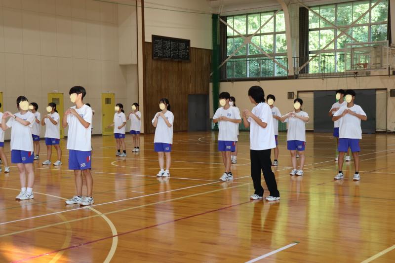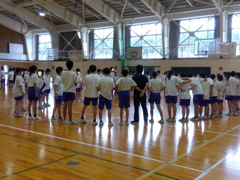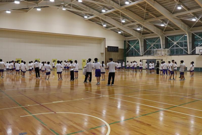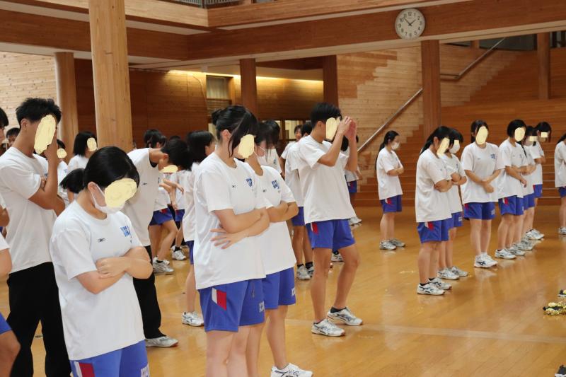 全国大会に出場した男子テニス・女子バスケ・陸上(個人)からの結果報告、夏休みにあった大会やコンクール等の表彰披露、また学び集会を行い、1学期の取り組みの結果と2学期からの学習についてのお話がありました。