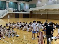私もバスケットボールを担当しました。20名弱の生徒を相手に、準備運動、SAQトレーニング、そしてバスケットボールを使ったハンドリングとシュート。少ない時間の中でしたが、ひと通りのメニューをこなしましたが、久しぶりの指導。勘が鈍っていました。まず、シュートが入らない。なんと、女子用のボールでも届きませんでした。気持ちだけではだめですね。ちょっとずつ練習を始めます。