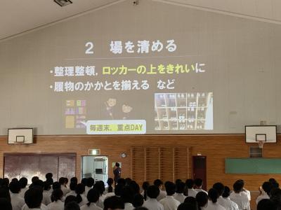 本日、15時20分から片山津中学校水口桂太教諭をお招きし「錦城中学校PBSキックオフ研修会」を実施します。