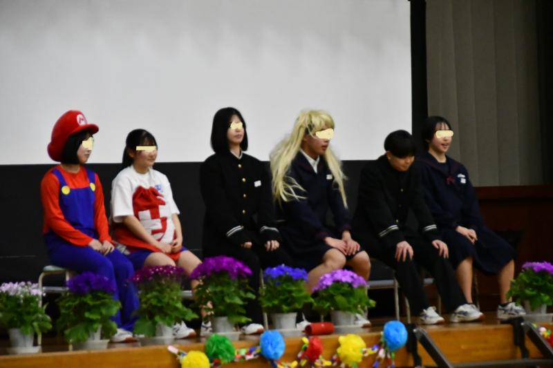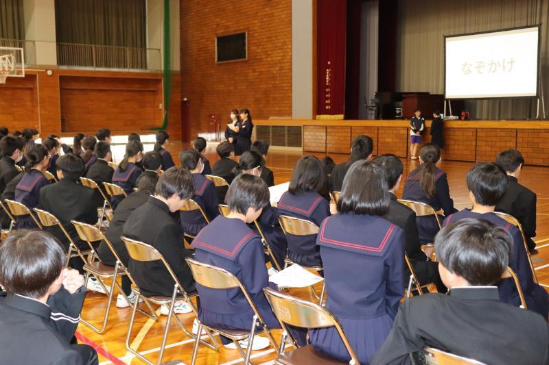 各部の紹介や生徒会が考えた「なぞかけ」のレクリエーションがあったりして、とても盛り上がりました。
