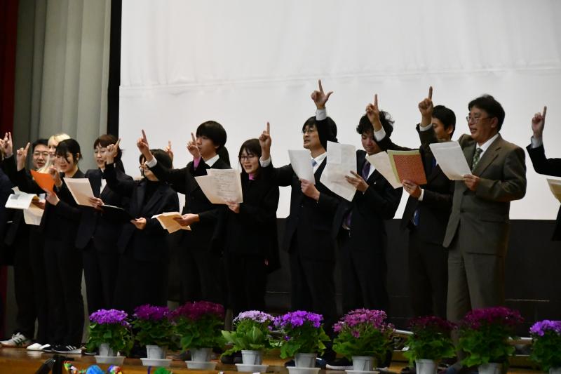 さらに、全校生徒で校歌を4題まで歌いしました。