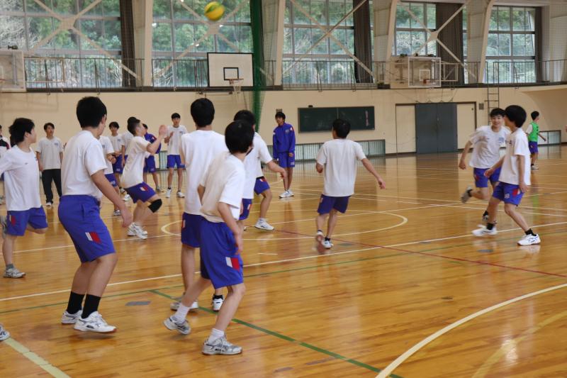 男子はドッジボール、女子はバレーで全員が一生懸命プレイしていました。