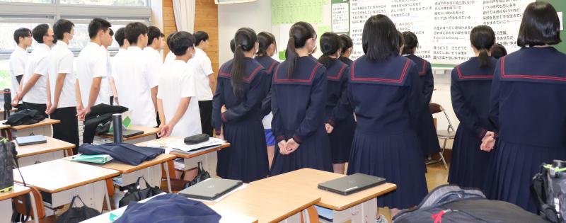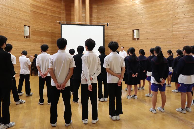 10月12日(木)に全校集会(後期生徒会役員任命式)がありました。