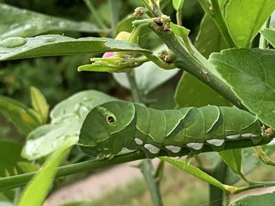 これは我が家のレモンの木にいる「アゲハチョウ」の幼虫です。耳を澄ますと、葉っぱをバリバリと音を立てて食べています。観察しているとなかなか楽しいものです。