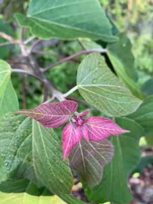 アカメカシワの新芽です。煎じるとポリフェノールたっぷりでノンカフェインのお茶に早変わり。