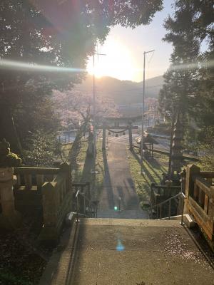 地元の神社、朝日が神々しい。「明けない夜はない。」この言葉にはずいぶん助けられました。生きていればいろいろな壁が目の前に現れるのですが、この言葉を信じて、地面を足でしっかり踏みしめて乗り越えてきました。というより、乗り越えさせてもらいました。ここ錦城中学校でも同じようにじっくりと、じっくりと一歩ずつ前に進んでいきたいと思っています。どうぞよろしくお願いします。