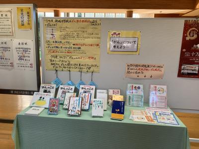 玄関ホールには、学校司書の畑さんに「がん」に関する書籍を準備してもらいました。