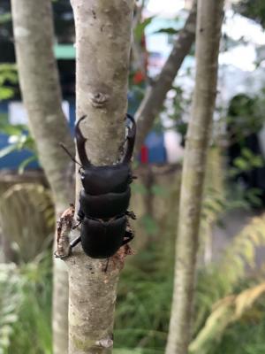 家の前でひっくり返っていた「コクワガタ」ソヨゴの木に留めました。久しぶりにコクワガタを見ました。数年に1回、庭で発見します。この後姿を消してしまいました。