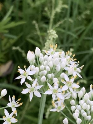 答えは「ニラ」の花です。今の時期に咲くんだったと思い出しました。つぼみをあえ物にしたものを食べたことがあります。