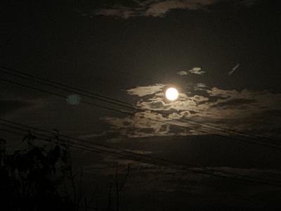 雲が晴れた時に現れました。スマホの映像なのですが、アップにして撮影してもこれだけです。もっと月の模様とかが撮影できる方法はないのでしょうか。これでは白熱級と同じですね。スマホが古いのでこれが限界なのかなぁ。