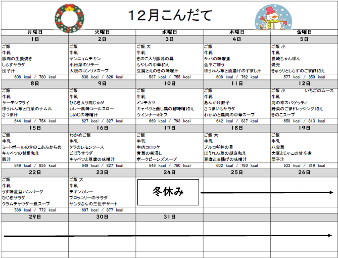 ファイルが欲しい方は12月献立.でダウンロードしてください。