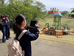 彫刻の森やおとぎの国、ちびっこ広場など、ガイドマップ作りでそれぞれが担当した場所の写真を撮るためにみんなで公園を周りました。一人一人が考えて写真を撮る姿が見られました。