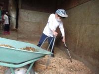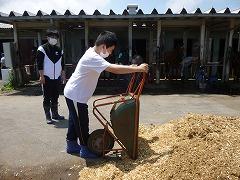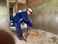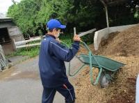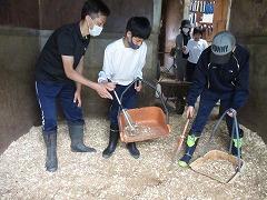 ボロ取りでは厩舎の中にある木のチップや馬の糞などを一輪車に乗せて掃除しました。
